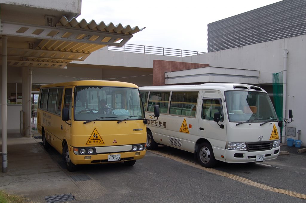 通園バスは黄色のバスが(黄バス)、白色のバス(白バス)の2台あります。